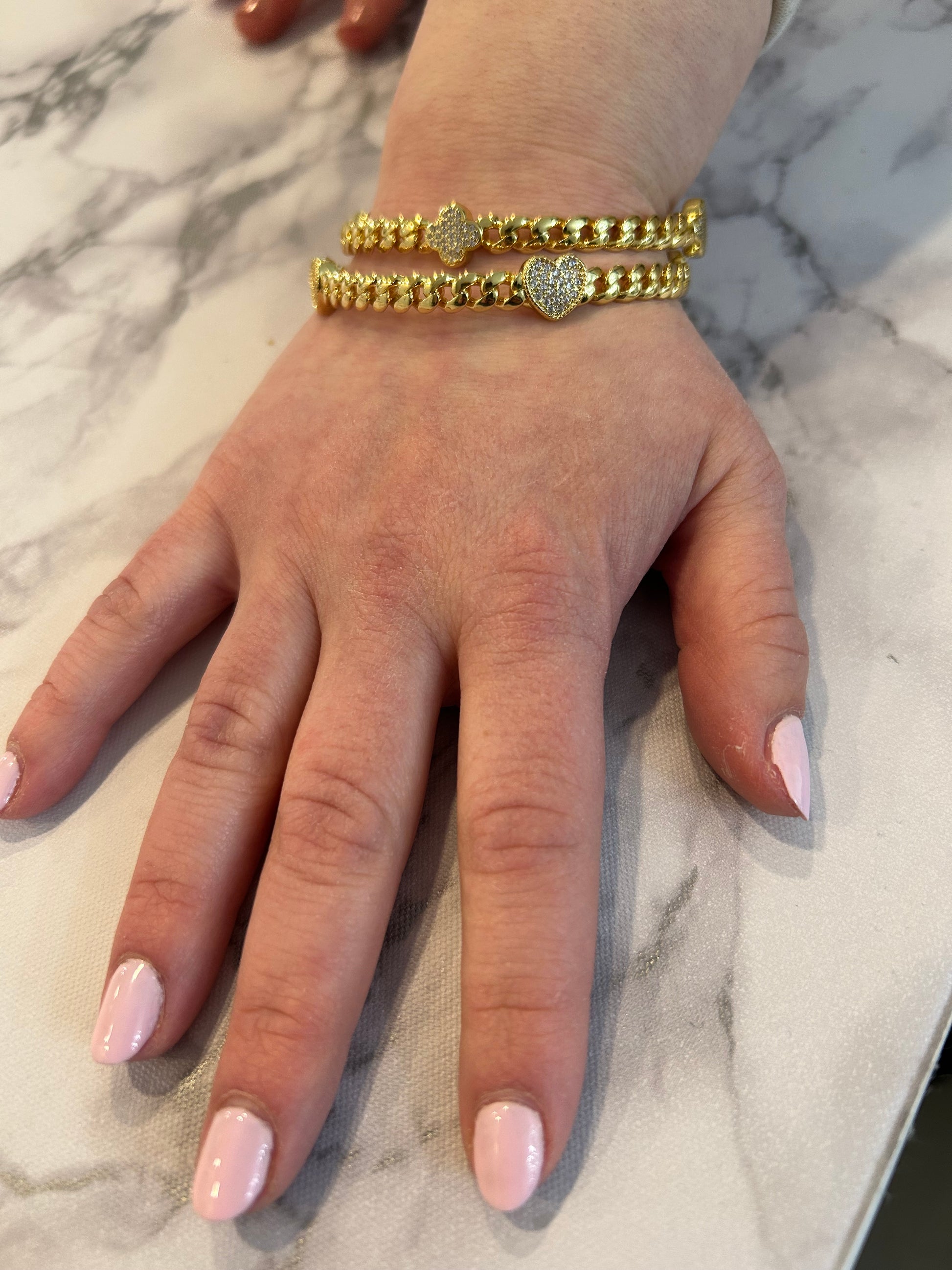 LMTS Classic! 14K Gold Plated Link Bangle Accented With Cz Clovers