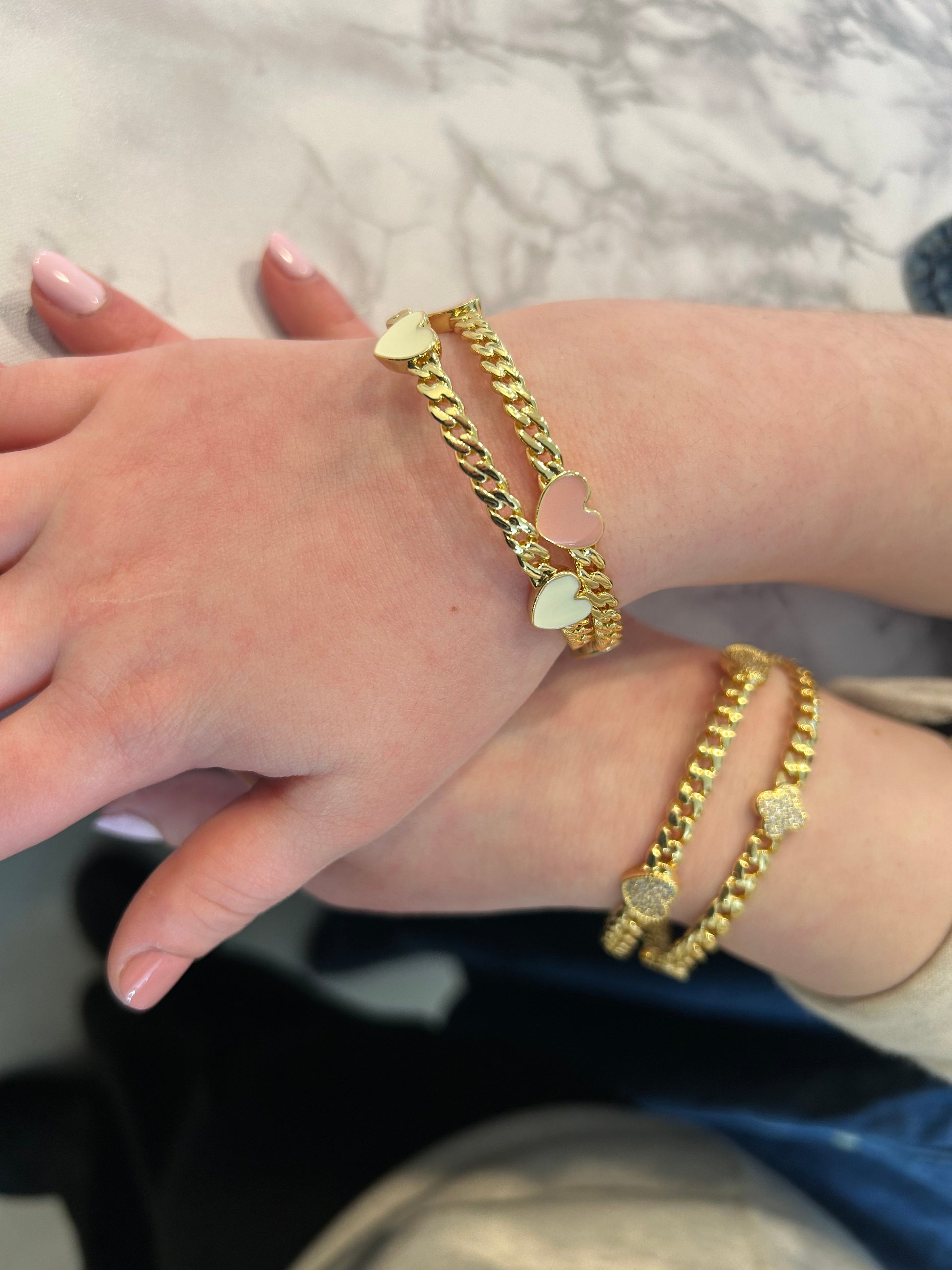LMTS Classic! 14K Gold Plated Link Bangle Accented With Enamel Hearts