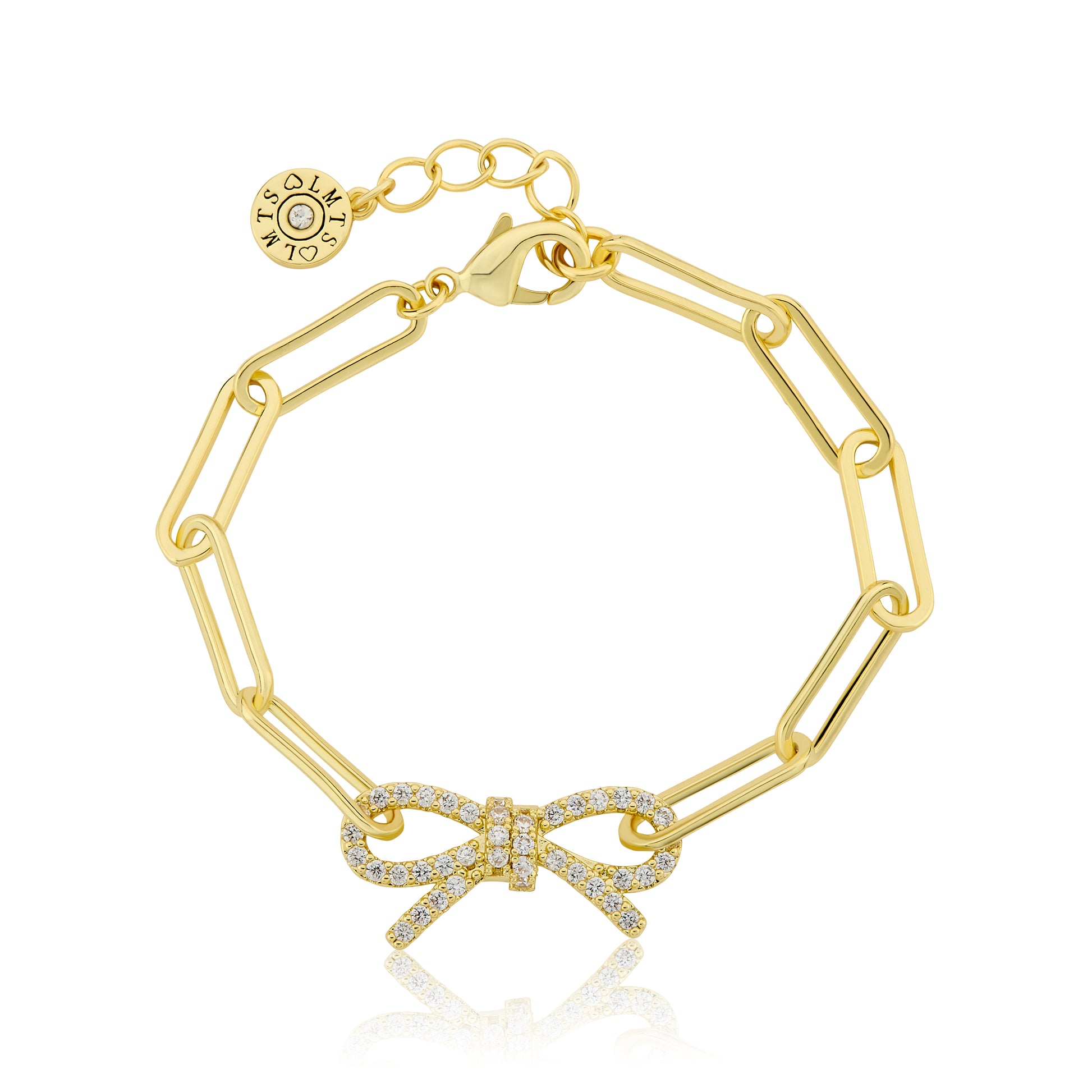 LMTS Classic! 14K Gold Plated Links Chain Bracelet With Cz Open Bow Center