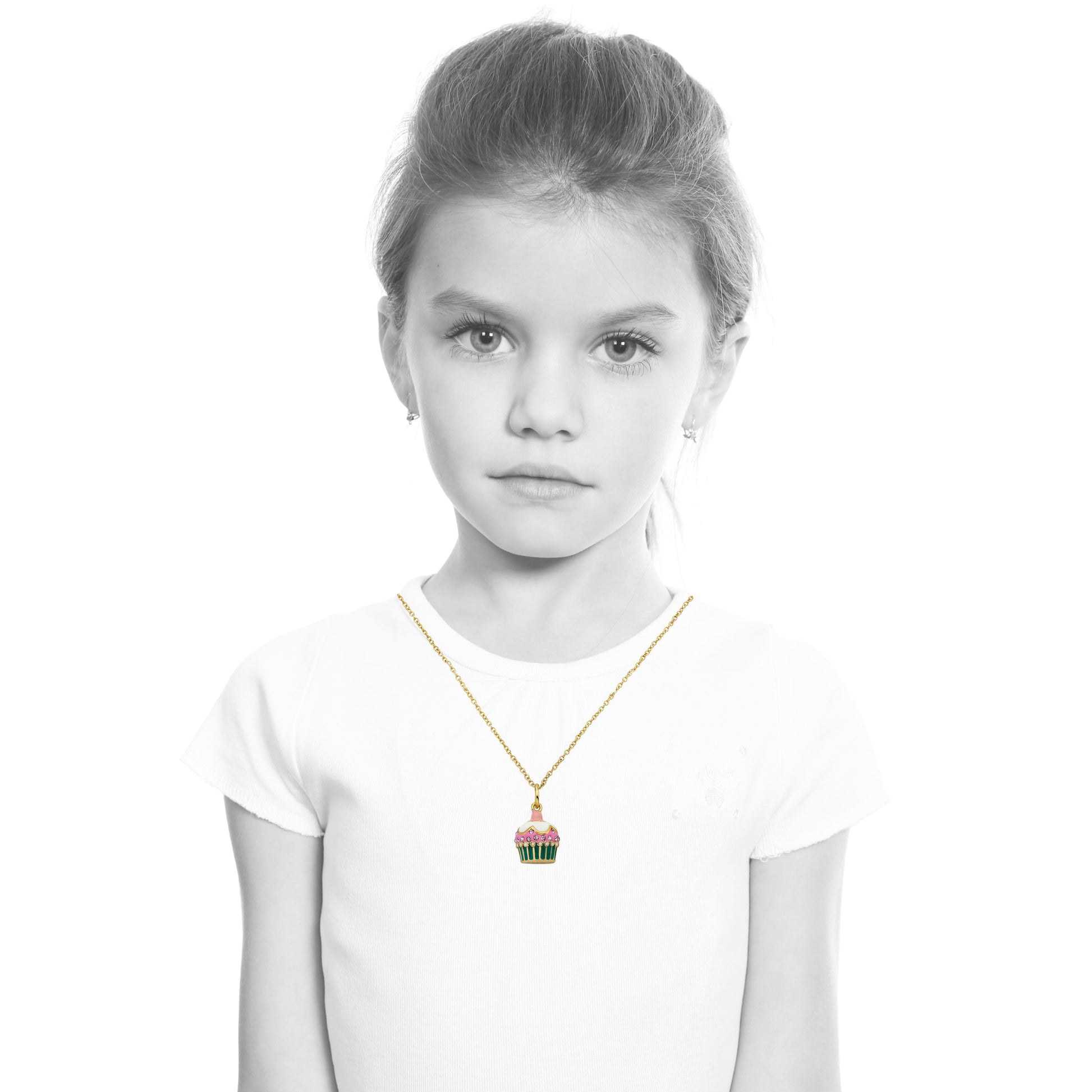 Molly Glitz Sparkle Sweet Pink Crystal & Enamel Cupcake Pendant Necklace