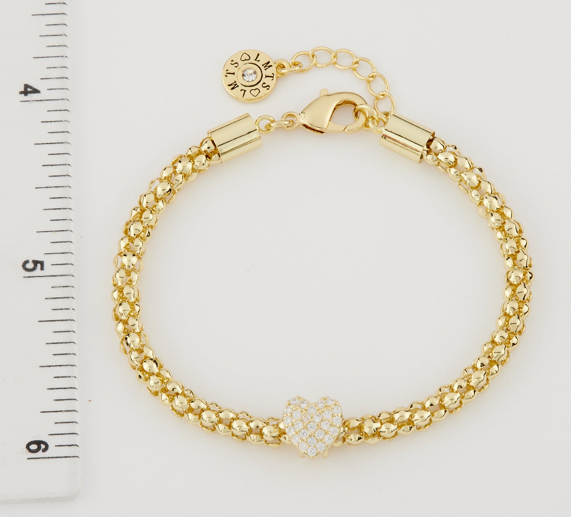 LMTS Classic!14K Gold Plated Mesh Rope Cz Slide Heart Bracelet