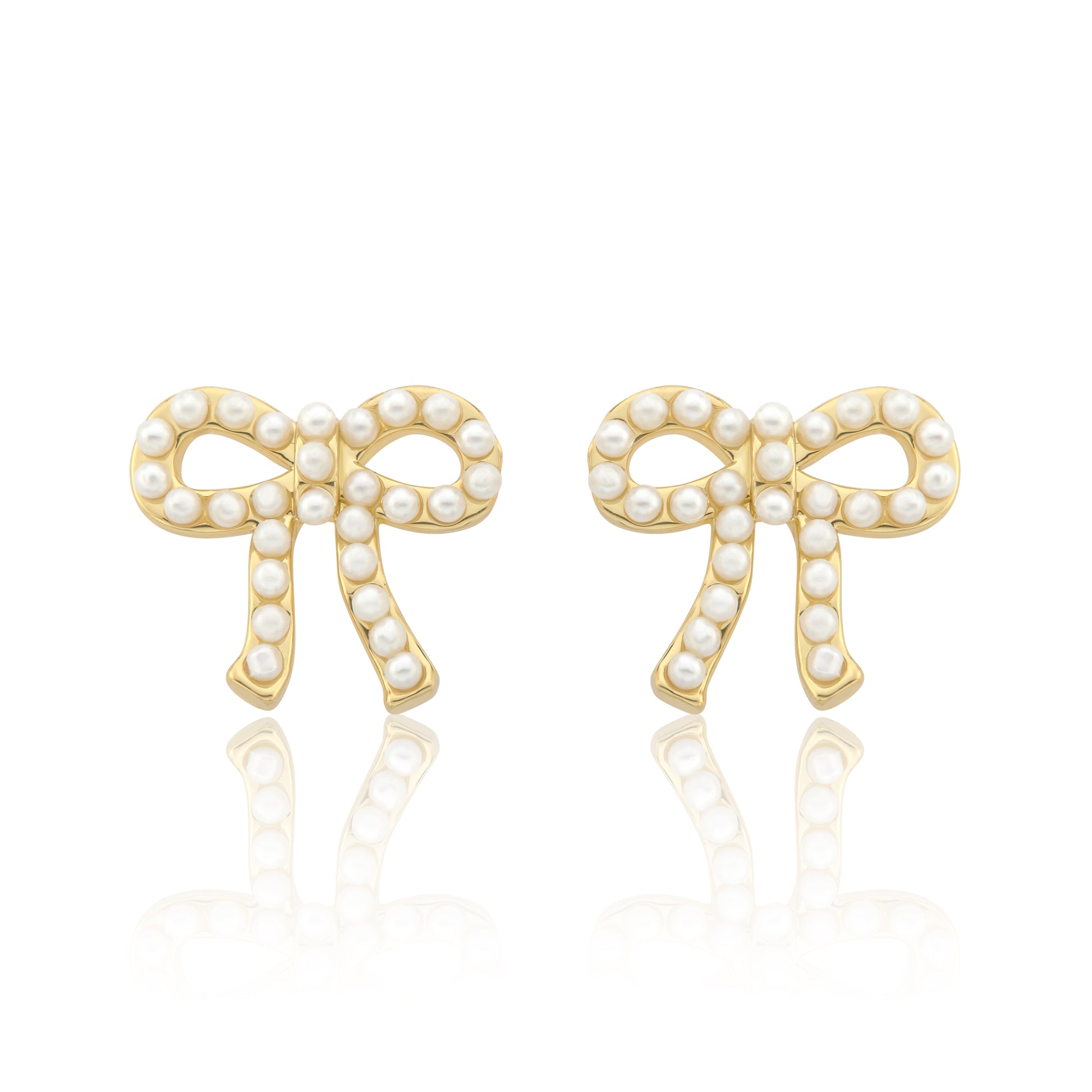 LMTS Classic! 14k Gold Plated Pearl Bow Stud Earring