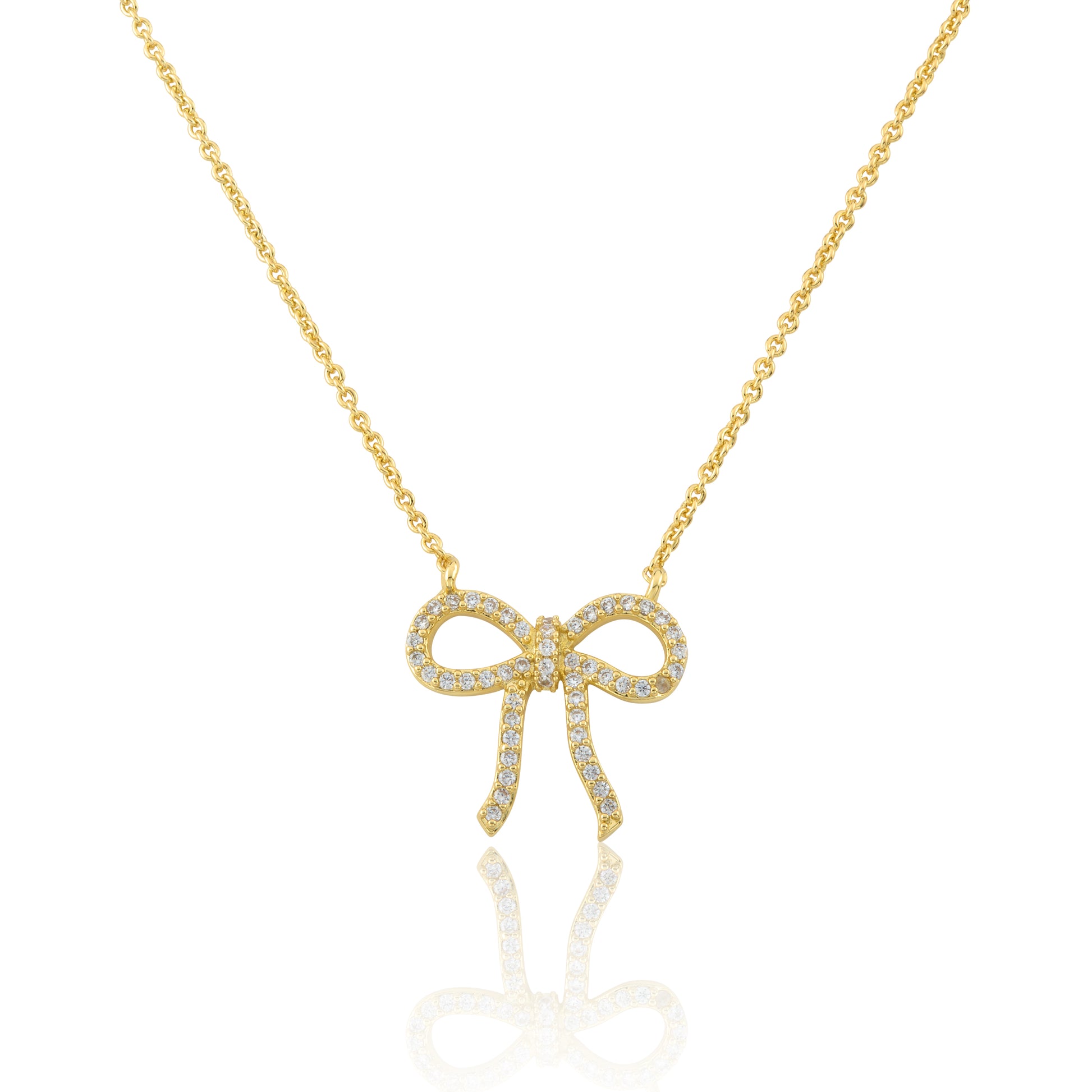 LMTS Classic! 14k Gold Plated Cz Bow Necklace