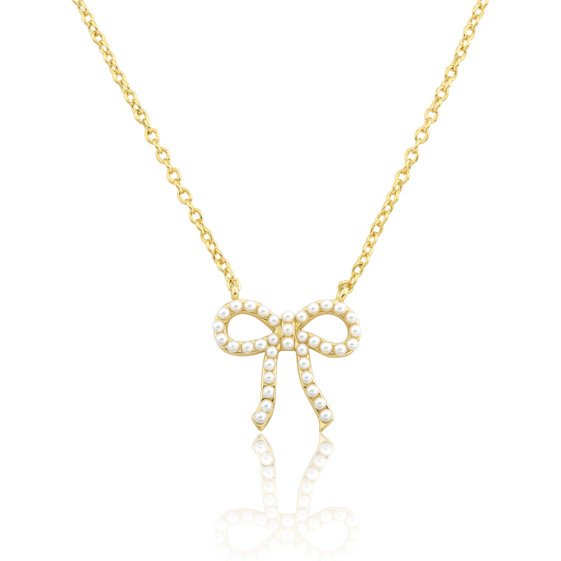 LMTS Classic! 14k Gold Plated Pearls Bow Necklace