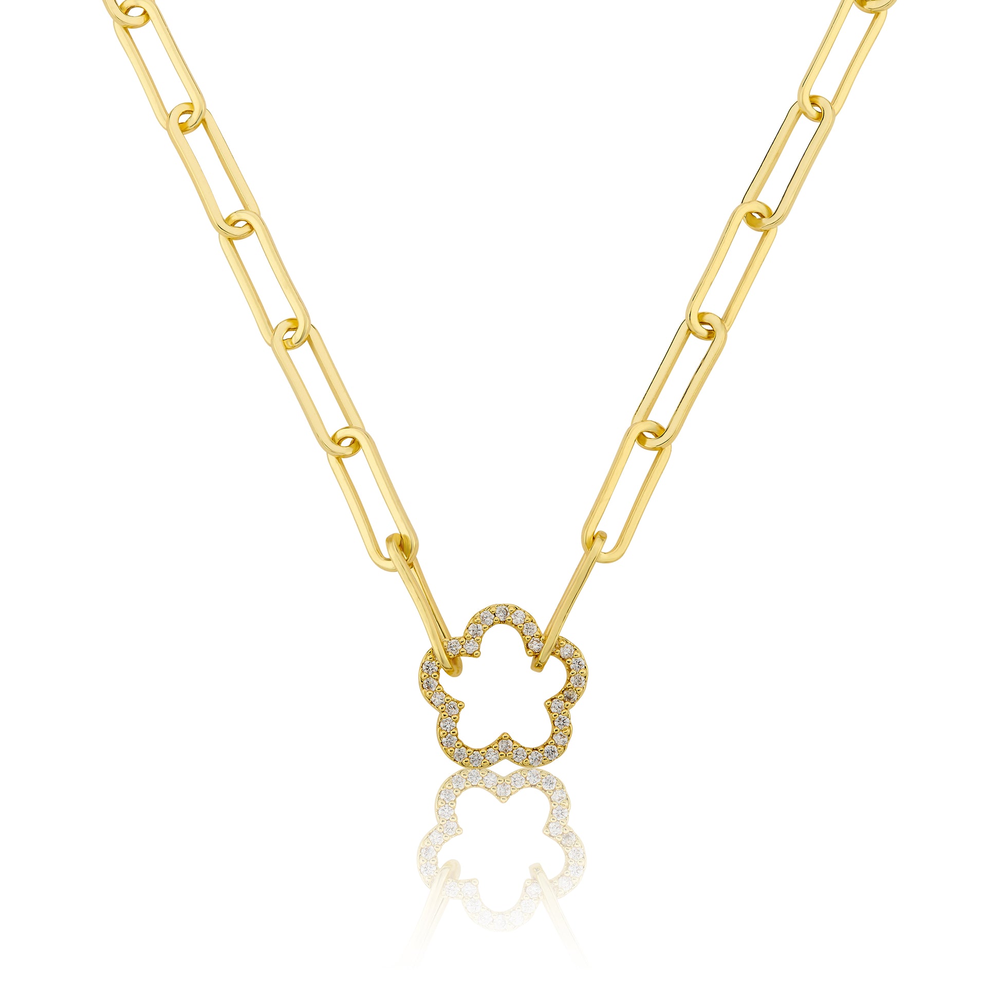 14K Gold Plated Links Chain Necklace With Cz Open Flower Center Wholesale