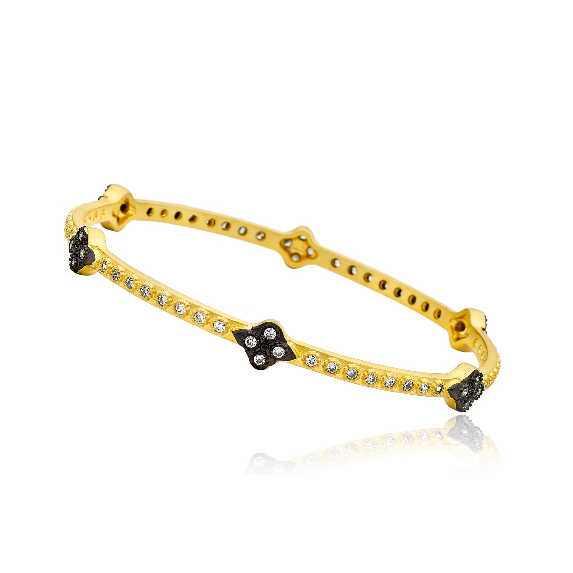 Cosmopolitan 14K Gold Plated Bangle With Cubic Zirconia's Accented With Black Rhodium Flowers Wholesale