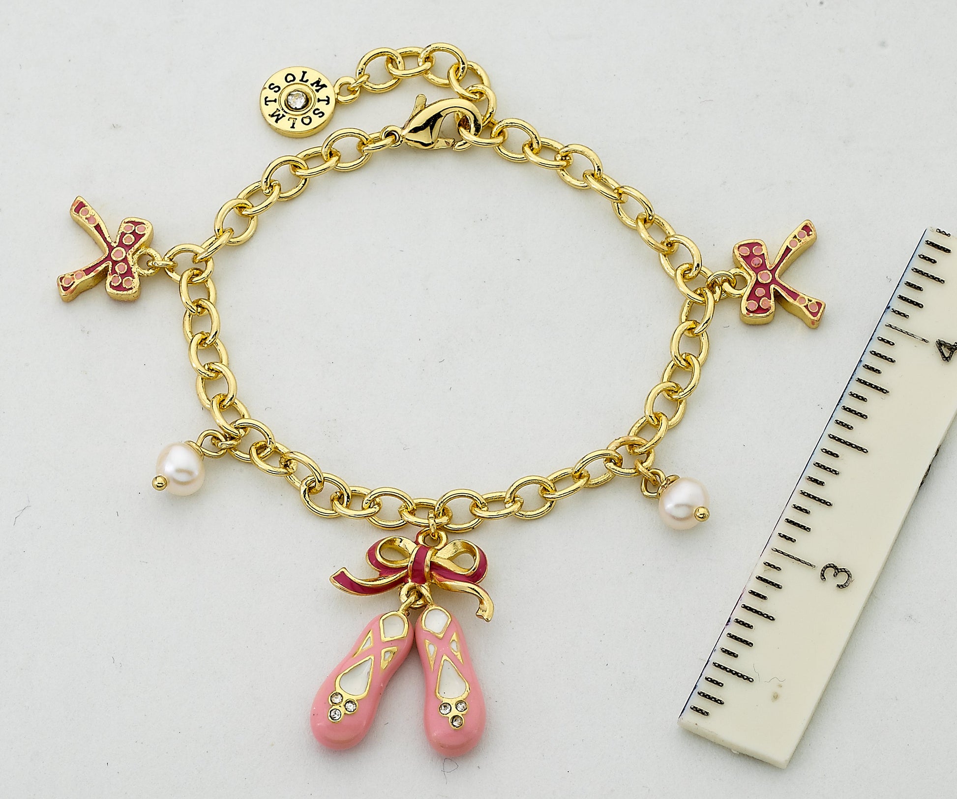 LMTS Enamel Ballet Slippers & Bows Charm Bracelet Accented With Fresh Water Pearls