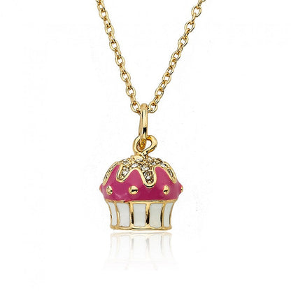 LMTS Crystal Flower Dripping Enamel Cupcake Pendant Chain Necklace
