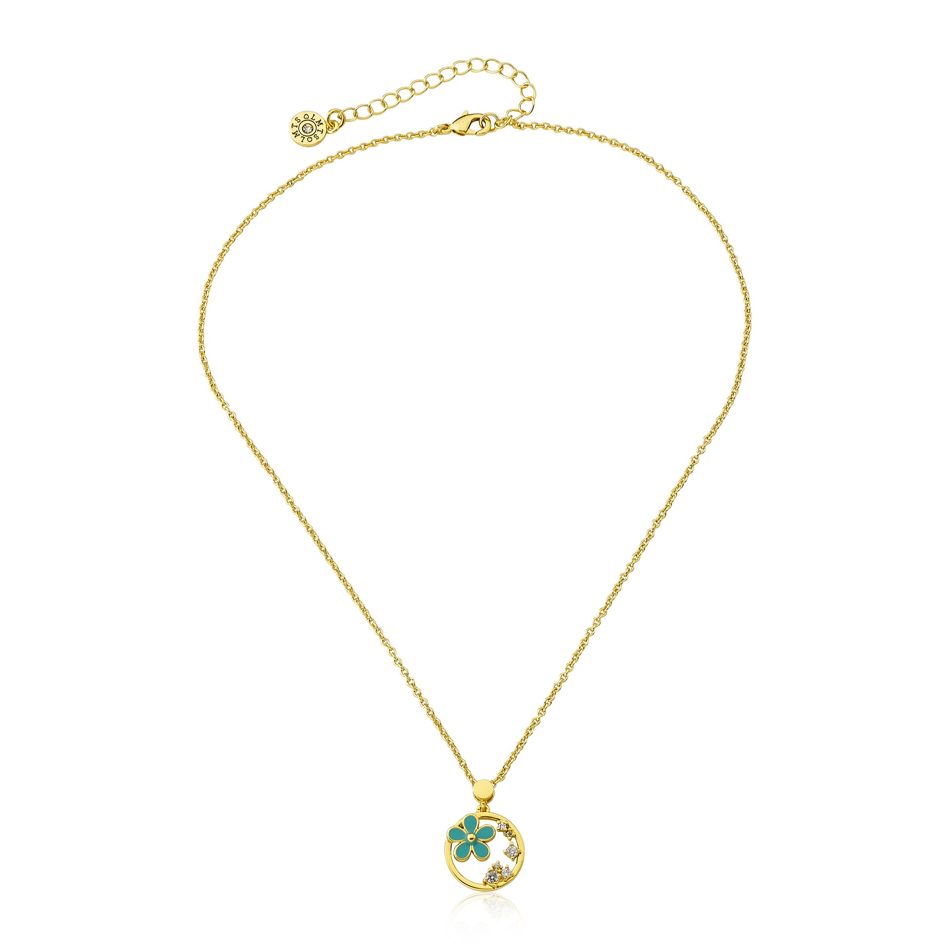 LMTS Frosted Flowers Open Circle Pendant Necklace Accented With Turquoise Enamel Daisy And Cz's