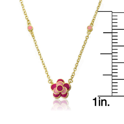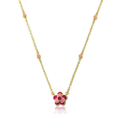 Frosted Flower Pink & Hot Pink Petals Flower Chain Necklace Accented With Pink Enamel Dots