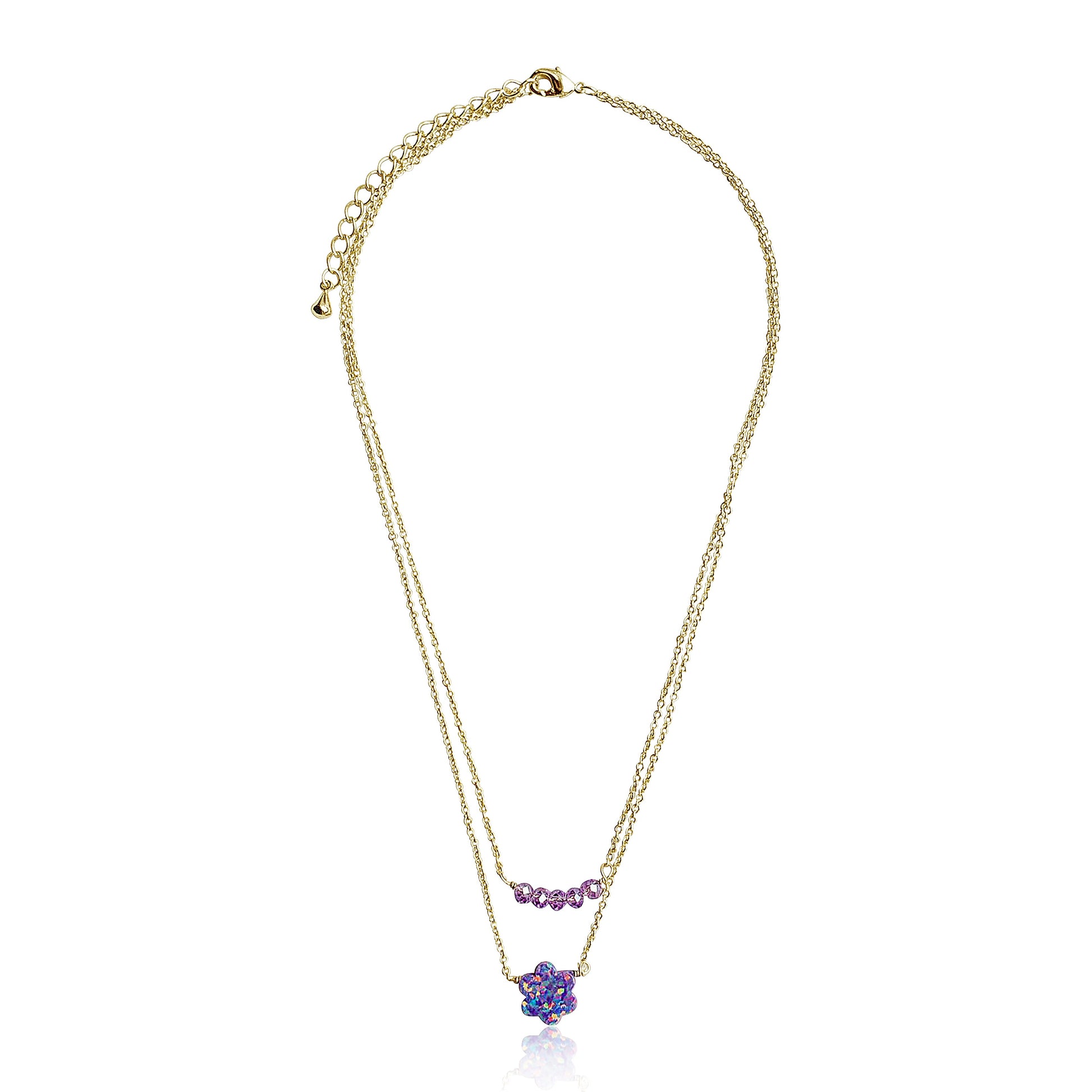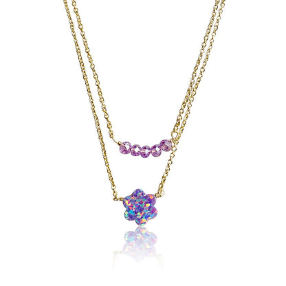 Glitter Girl 2 Strand Chain Necklace Accented With Crystals and Purple Opal Flower