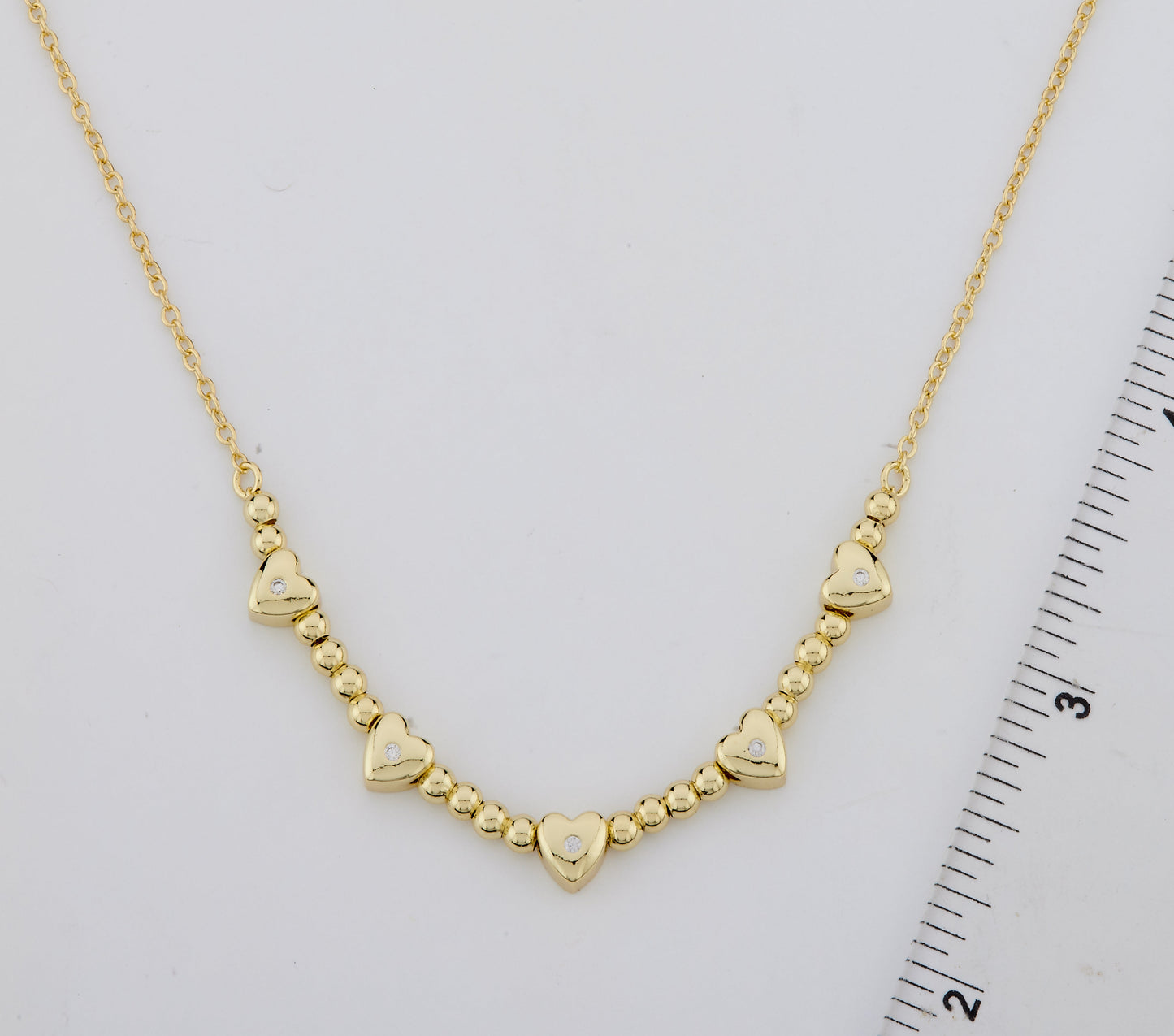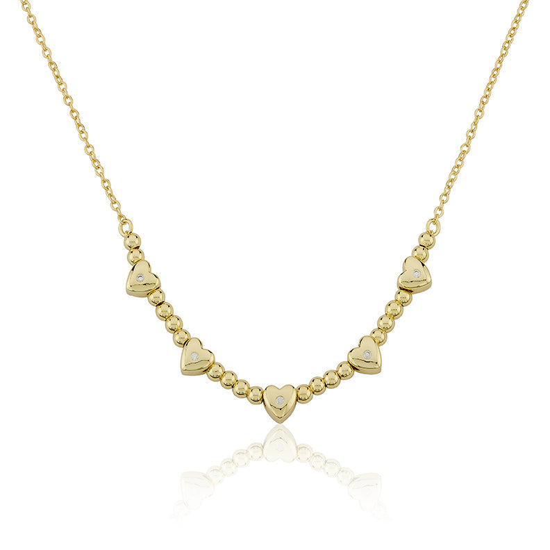 LMTS Classic! 14K Gold Plated Bead & Cz Station Hearts Necklace