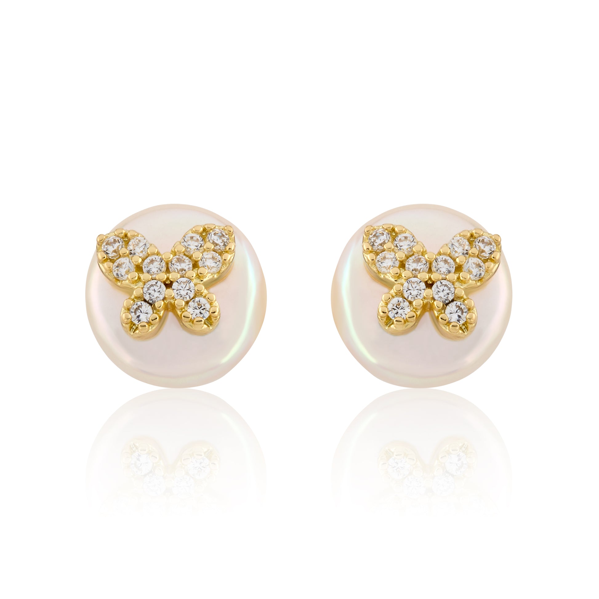 14K Gold Plated Cz Butterfly Over 10mm Pearl Stud Earring Wholesale
