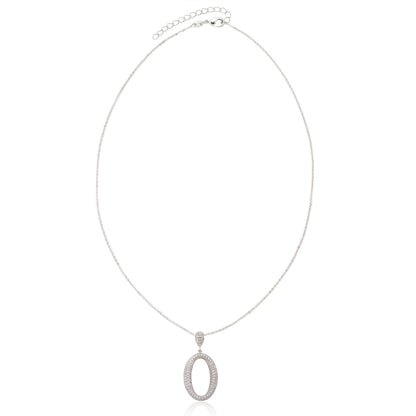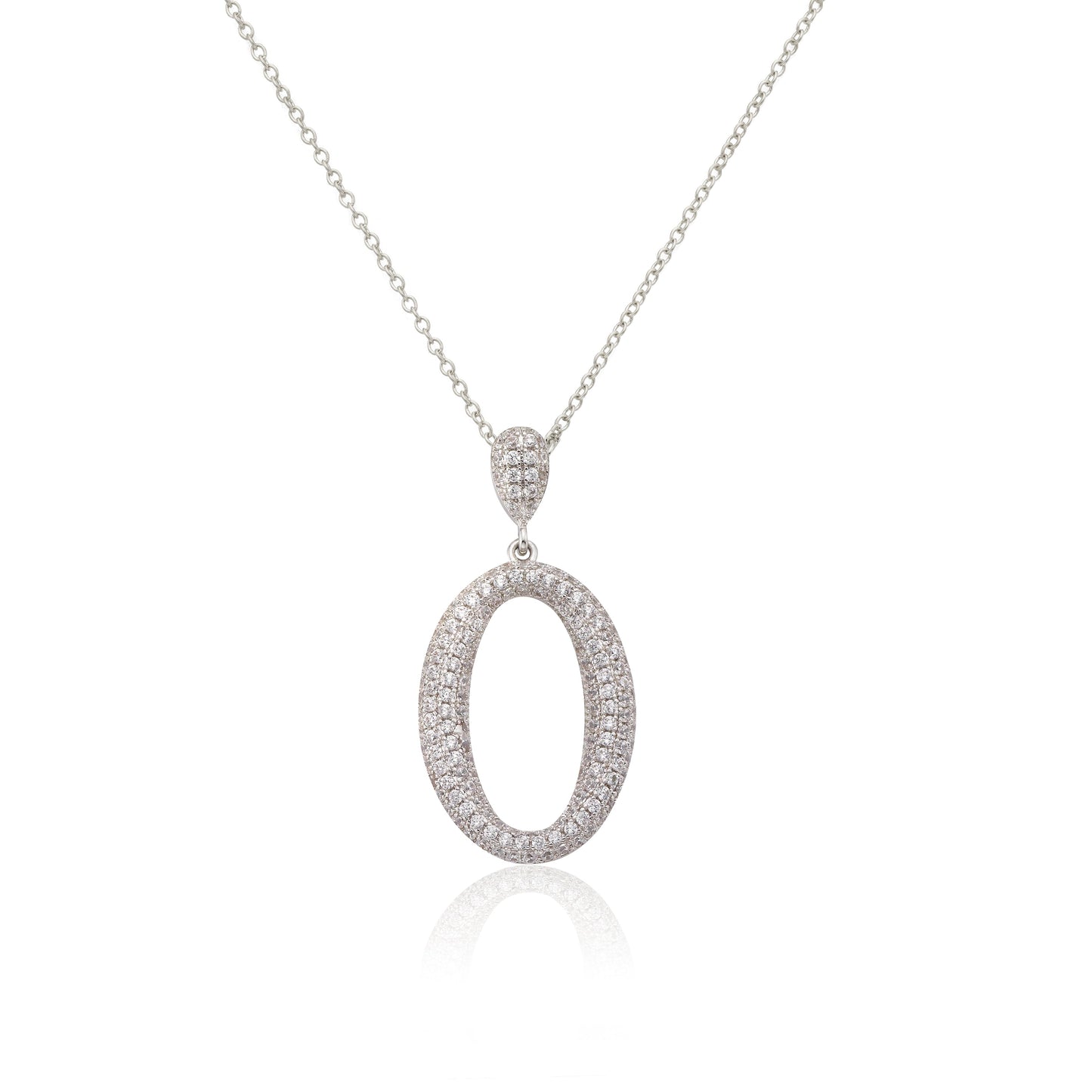 Description: Micro Pave Rhodium O Shaped Necklace fully set with CZ's