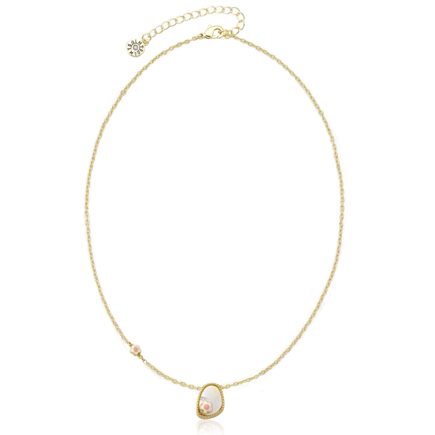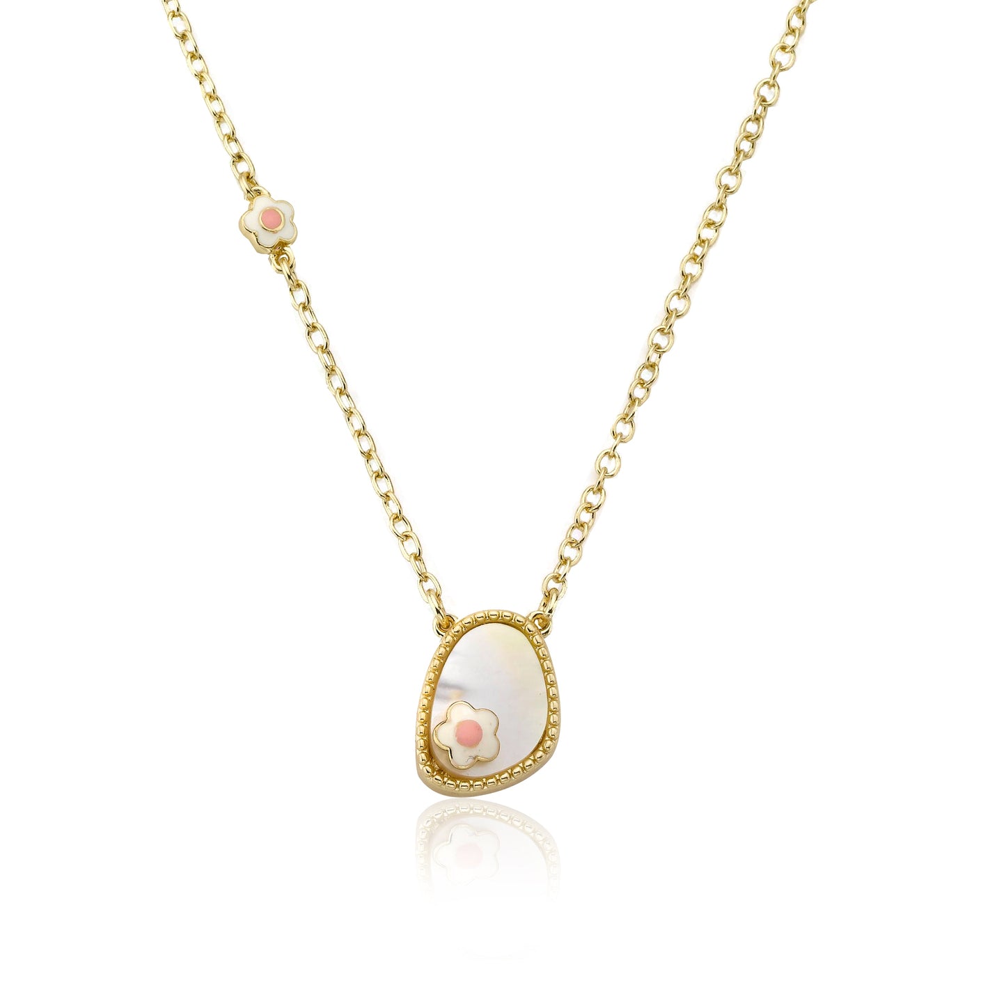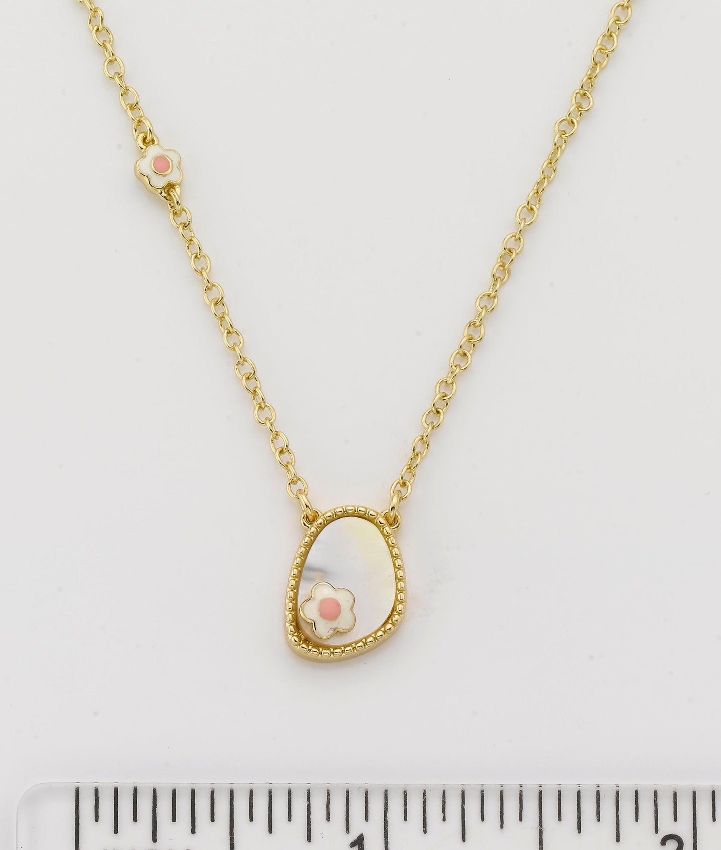 LMTS Little Miss Flower Girl Mother Of Pearl Chain Necklace Accented With Enamel Flower