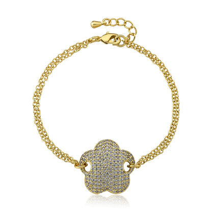 LMTS Classic! 14k Gold Plated Pave Large Flower Bracelet