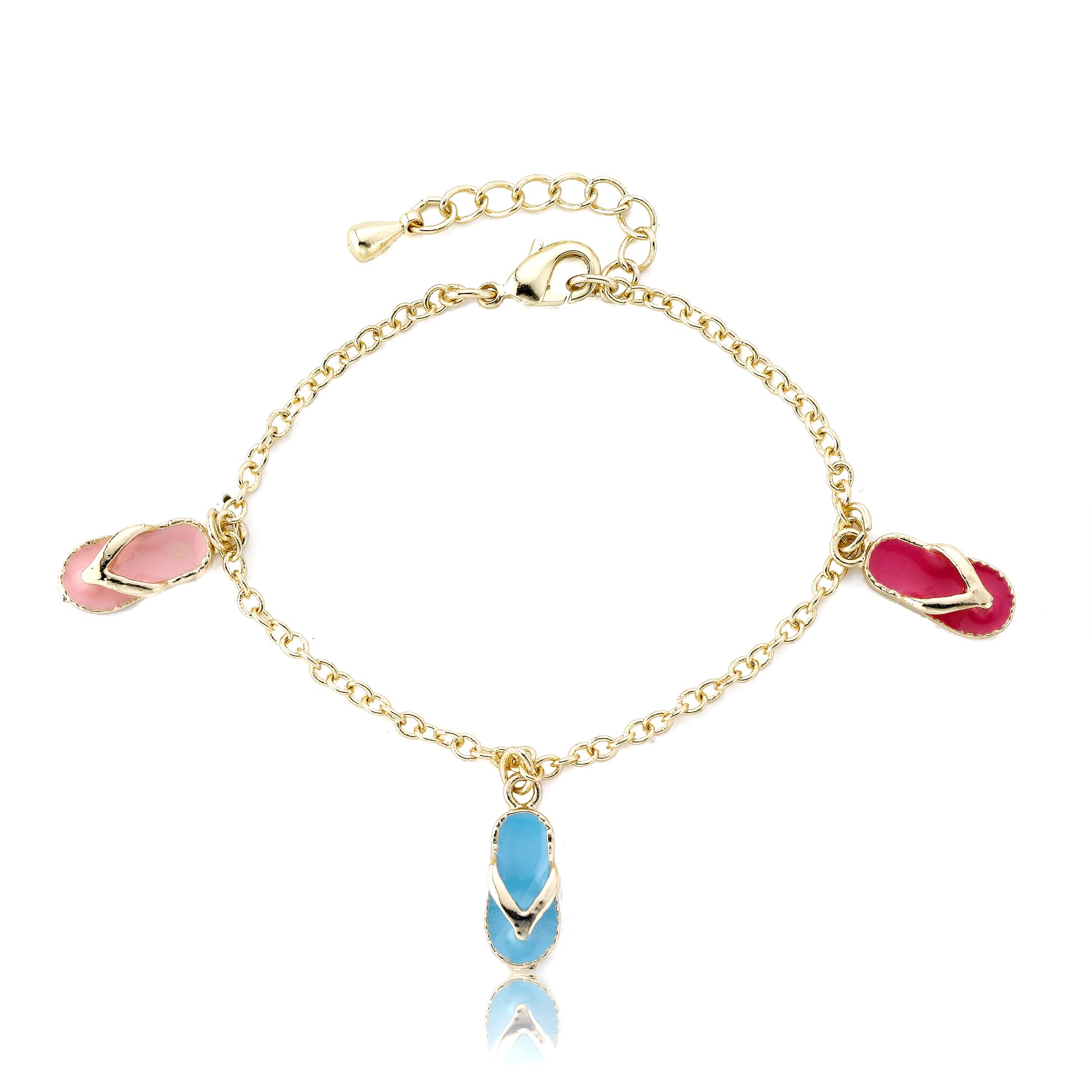 Sam K Multi Color Enamel Flip Flop Charm Bracelet